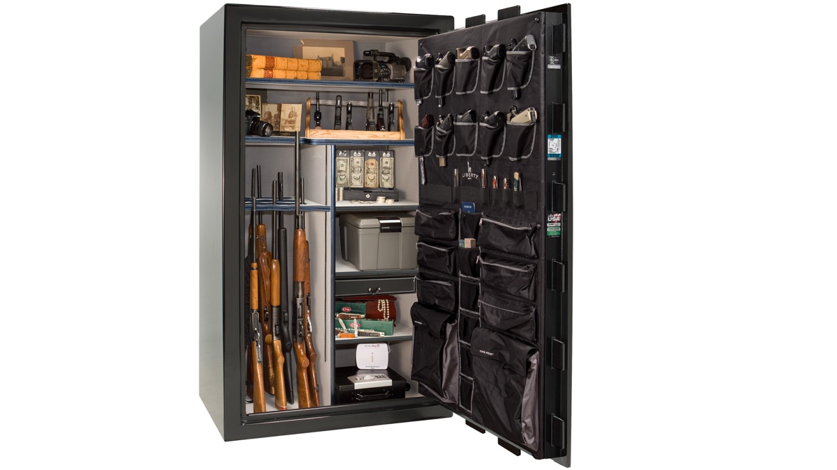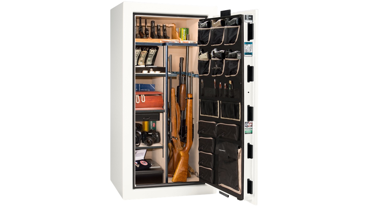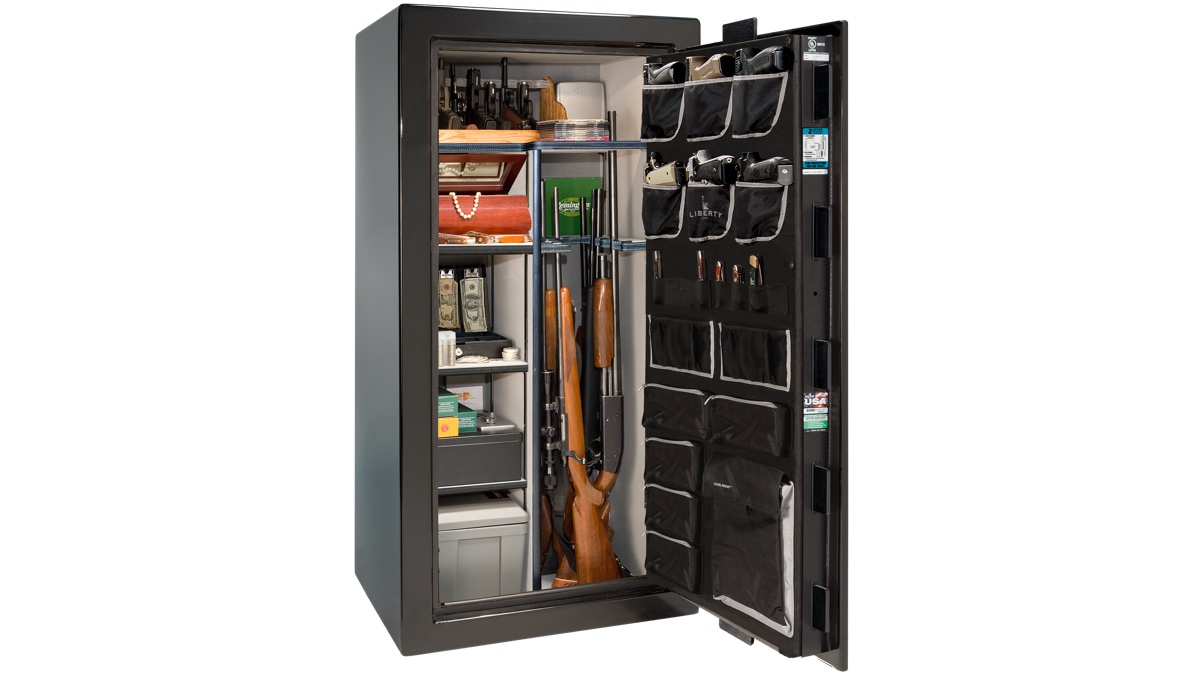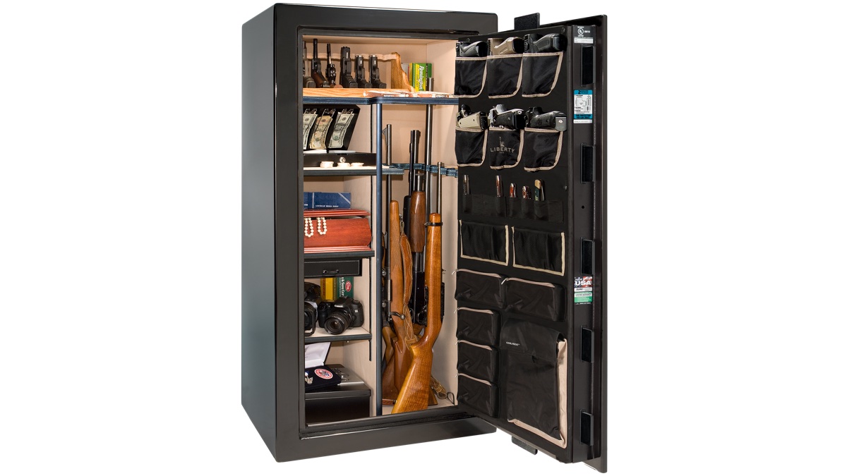 Every safe comes factory-installed with a deluxe door panel, interior outlet kit, and Clearview LED lighting. You're not buying accessories and retrofitting them later — Liberty includes them from the factory because at this level, they should be standard. The interior illumination makes it easy to find what you need, and the outlet kit lets you keep devices charged or run a dehumidifier without running cords through the door seal.
