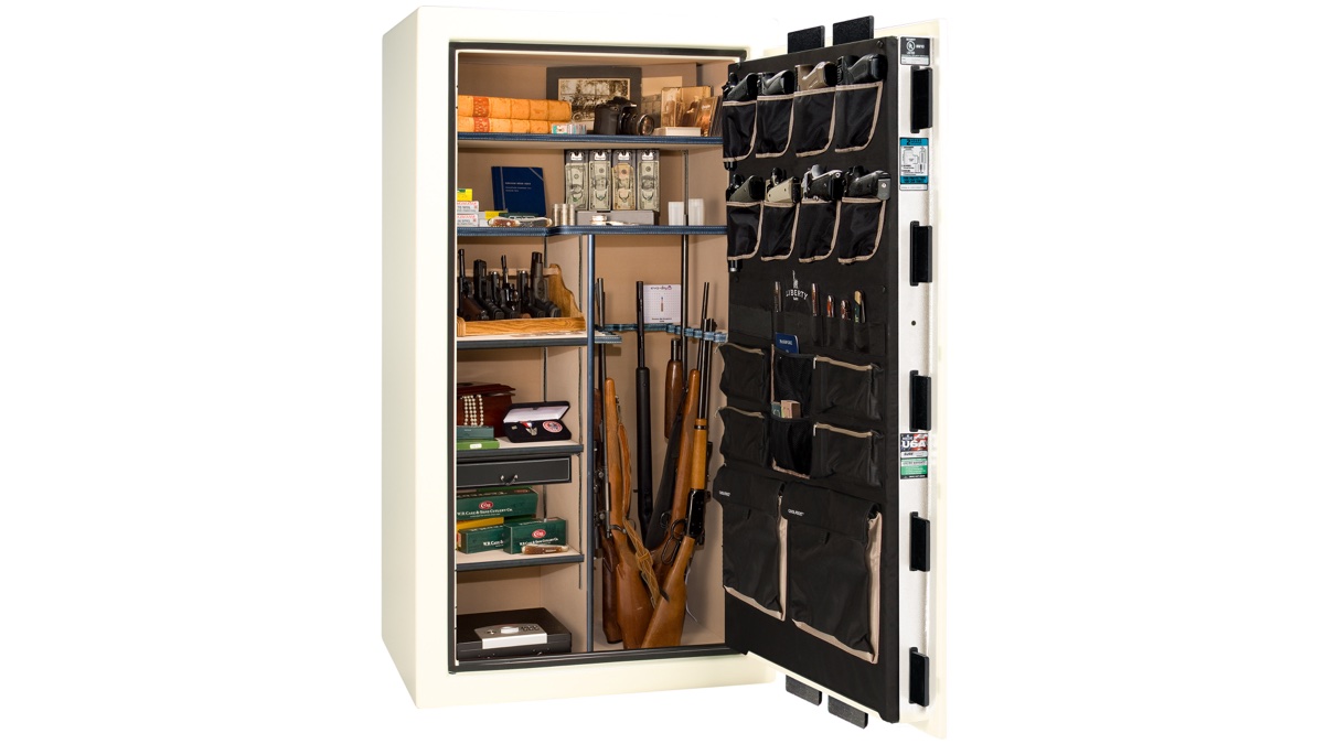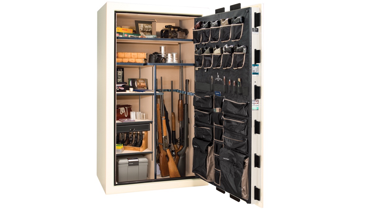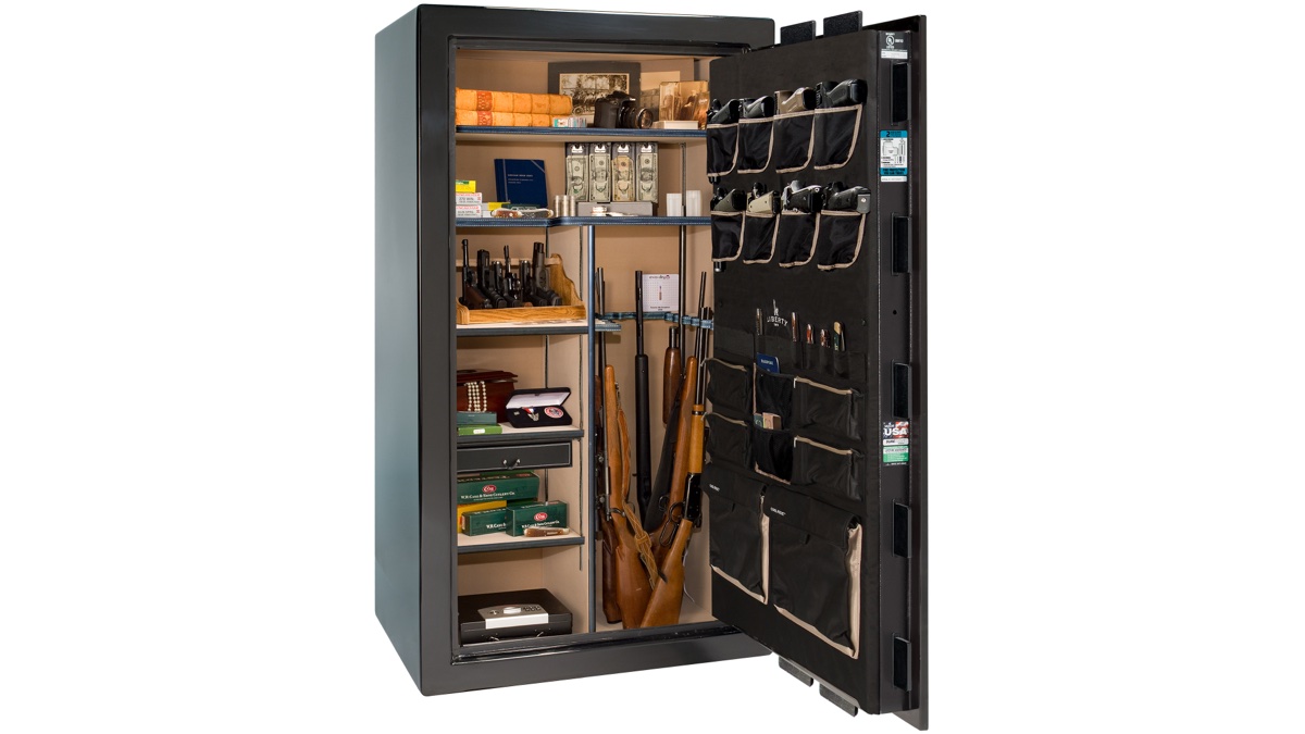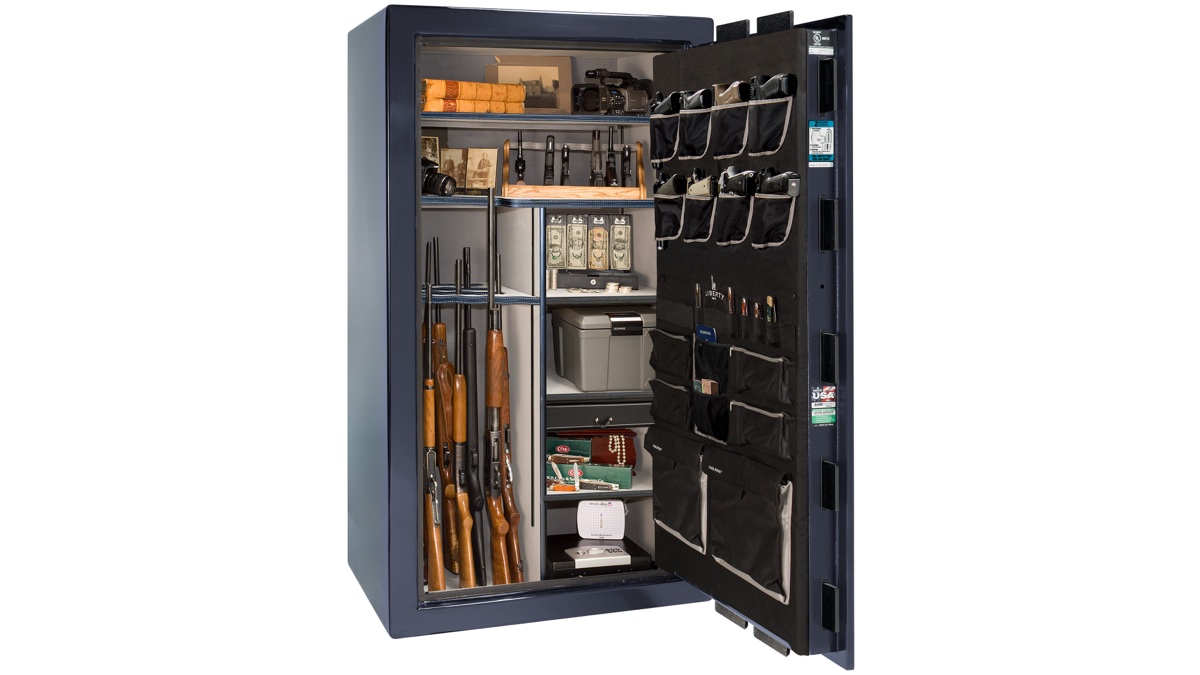Every safe comes factory-installed with a deluxe door panel, interior outlet kit, and Clearview LED lighting. You're not buying accessories and retrofitting them later — Liberty includes them from the factory because at this level, they should be standard. The interior illumination makes it easy to find what you need, and the outlet kit lets you keep devices charged or run a dehumidifier without running cords through the door seal.
